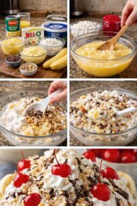 This Banana Split Fluff Salad is creamy, fruity, and incredibly easy — the perfect no-bake dessert everyone will love. 🍌✨