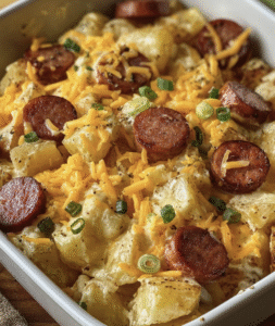 Itβs the perfect mix of tender potatoes, smoky sausage, and that familiar ranch seasoning we all love. Add melty cheddar on top, and it becomes a hearty, no-stress dinner that tastes like comfort in every bite. Whether you’re feeding a busy family or just craving something cozy, this dish is the kind that disappears fast.