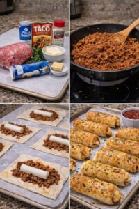 They take everything you love about tacos — seasoned beef, melted cheese, and bold flavor — and wrap it all inside soft, golden dough. Baked until perfectly crispy on the outside and gooey on the inside, these taco sticks are the perfect handheld comfort food.