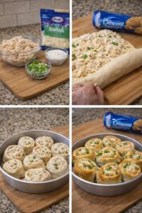 They’re soft, golden, and packed with creamy ranch chicken filling, all wrapped inside flaky crescent dough. As they bake, the outside turns perfectly golden and buttery while the inside stays rich, cheesy, and full of flavor.