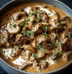 This is old-fashioned ease at its best: tender beef slow-cooked until melt-in-your-mouth soft, wrapped in a creamy, savory sauce that tastes like it took all day β€” because it did, but without the effort. It’s the kind of recipe you start in the morning and forget about, knowing dinner will take care of itself.
