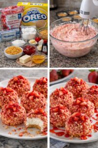 They’re soft, creamy on the inside with that rich cheesecake flavor, and coated in a sweet, buttery strawberry crunch that gives every bite the perfect texture contrast. Think of them like mini strawberry cheesecake truffles — but even better.