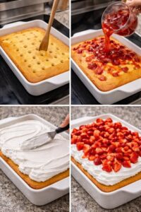 This Strawberry Shortcake Poke Cake is soft, fruity, creamy, and incredibly refreshing. The strawberry filling soaks into the cake, making every bite sweet and flavorful.