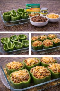 Remove peppers from the oven and fill each one generously with the taco mixture.