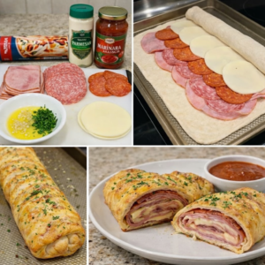 If there’s one recipe that feels like a cozy Italian bakery moment at home, it’s a Cheesy, Golden Italian Stromboli. This is the kind of dish that doesn’t rush you — the dough stretches slowly, the fillings layer gently, and the oven does the rest. As it bakes, the cheese melts, the meats crisp just right, and the crust turns that irresistible golden brown that makes waiting the hardest part.